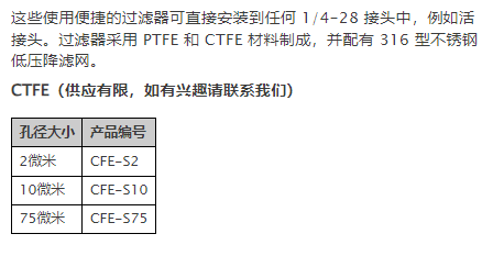 VICI 在线滤波器1/4-28系列